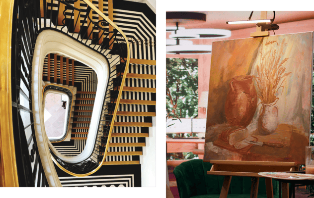 Een kunstgalerie, die zich in het hotel bevindt.